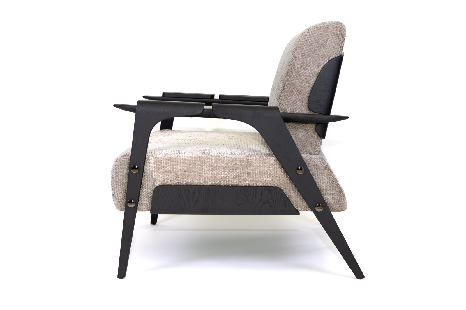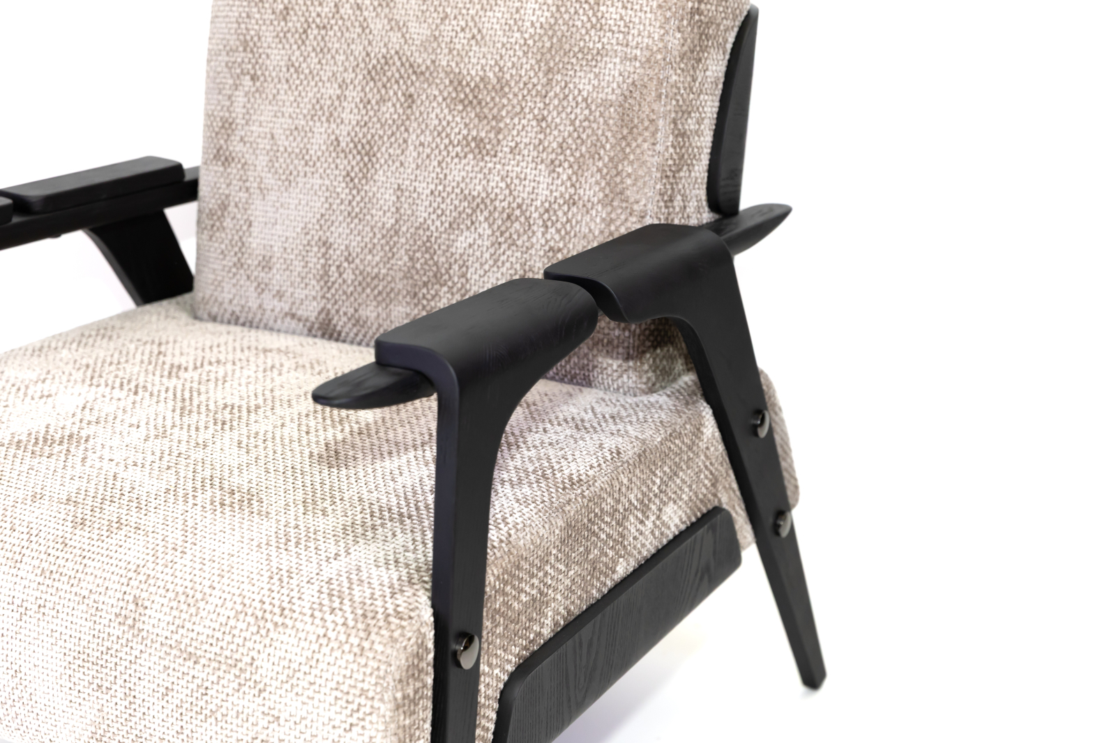 | Acest fotoliu elegant îmbină confortul modern cu rafinamentul designului retro. Structura lor este realizată din lemn masiv, oferind stabilitate și durabilitate, iar tapițeria textilă în nuanțe deschise adaugă un plus de căldură. Brațele din lemn prezintă detalii aurii, completând perfect aspectul contemporan al piesei. Datorită formei ergonomice și pernelor moi, aceste fotolii sunt ideale pentru relaxare și pot fi utilizate in living, birou sau zone de lounge. |